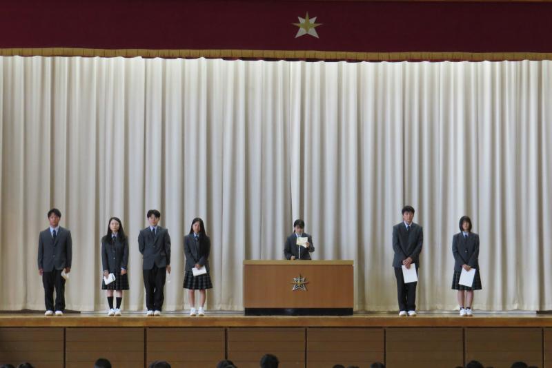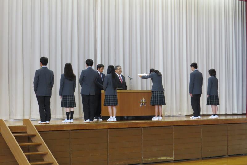 先日行われた生徒会選挙によって信任された、7名の生徒会役員の認証式を行いました。